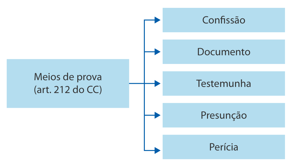 Feitas essas considerações, dissertaremos a respeito dos meios de prova previstos no Código Civil, com os devidos complementos e interpretações do Código de Processo Civil, quando aplicáveis.